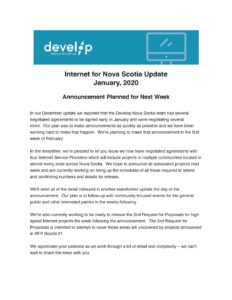 Internet for Nova Scotia Initiative – January, 2020